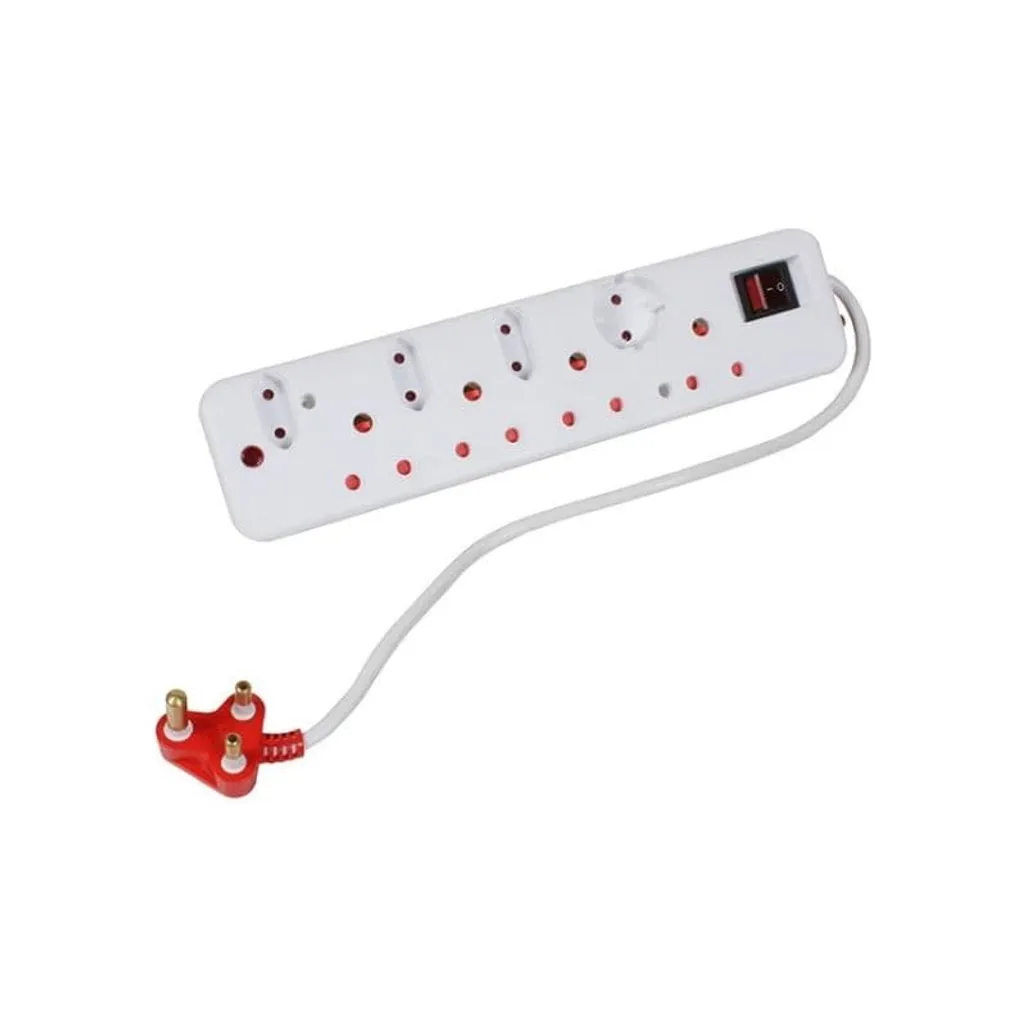 The Ellies 8 Way Multi-Plug has three 2-pin euro slots, a schuko socket, and four 3-pin sockets. It has a 0.5m extension cord. There is an indicator light that will show that the surge protector is working correctly.
