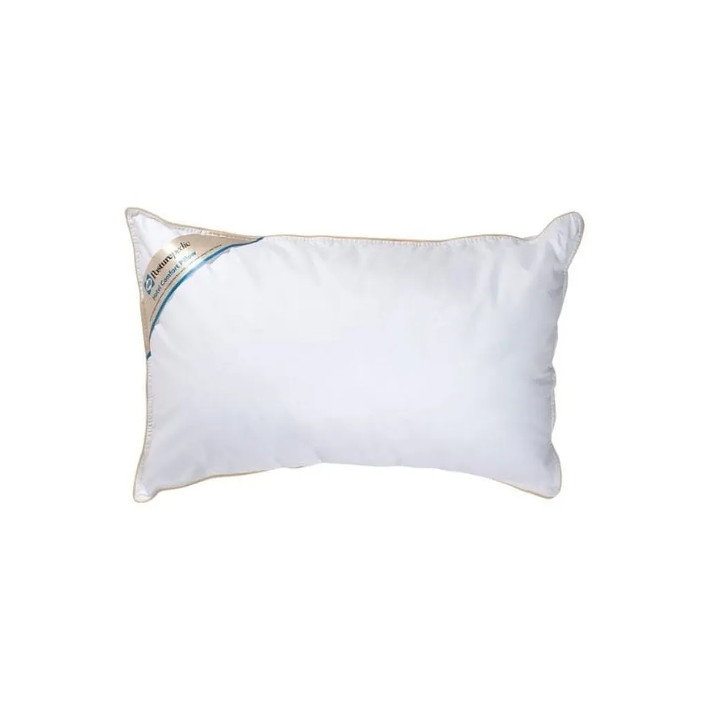 The Sealy Hotel Comfort Pillow has a 100% cotton casing, which consists of an outer chamber with microfibre, and has a centre core chamber ball fibre, for a medium to firm comfort.