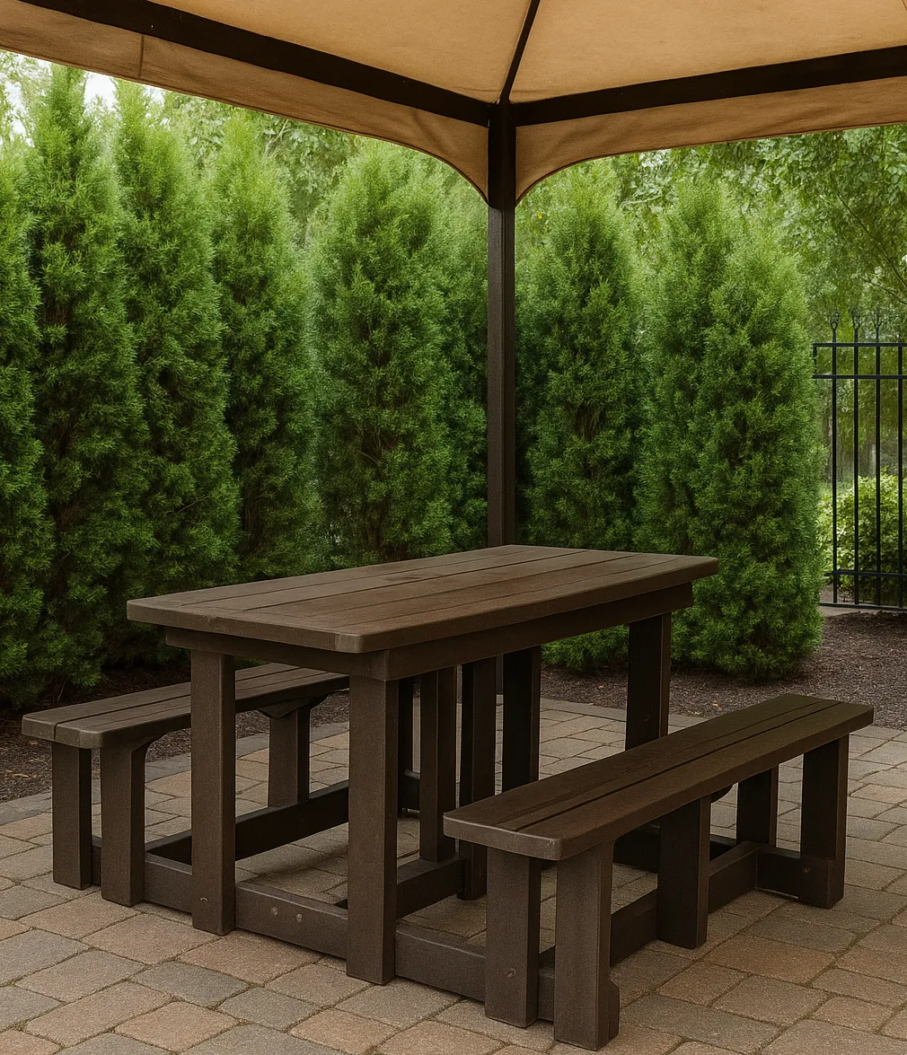 When space is limited, but you still want to host a gathering, the UTP 6 Seater Picnic Bench can be the solution. It's made from 100% recycled plastic and manufactured for strength and quality. This would be a good choice for a small patio because it's space-efficient and it can provide both seating and a table, offering a relaxed and versatile vibe.