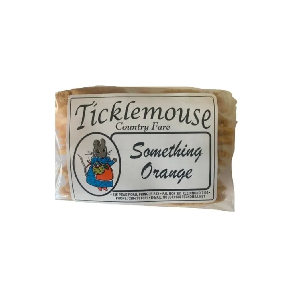 The Ticklemouse Something Orange Biscuits are crisp golden coloured single biscuit. Made of wheat flour, eggs, salt and orange rind, and they are baked with love.