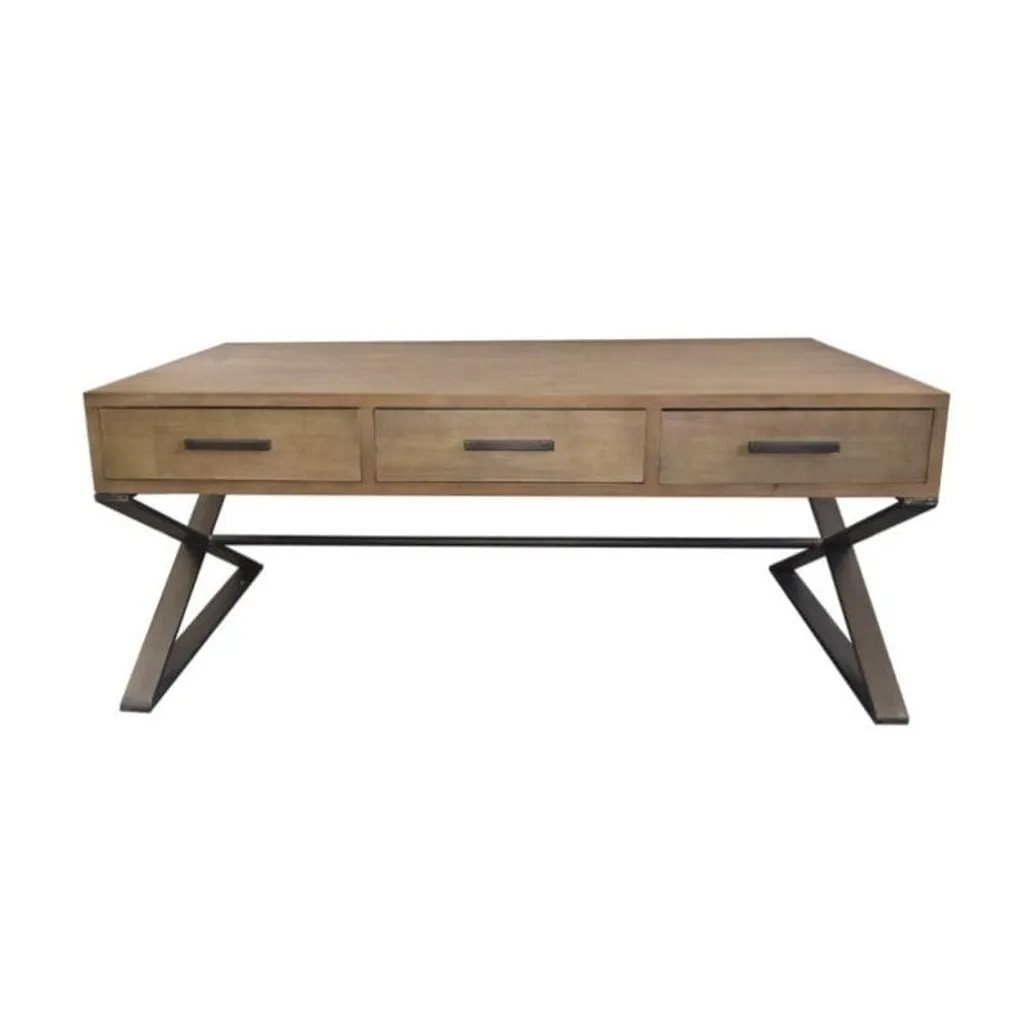The FourCorners Dixie Coffee Table is made of wood and has metal legs, It is ideal for serving refreshments and other food items when you are entertaining guests over at your home. This FourCorners Table has three drawers, for additional storage space.