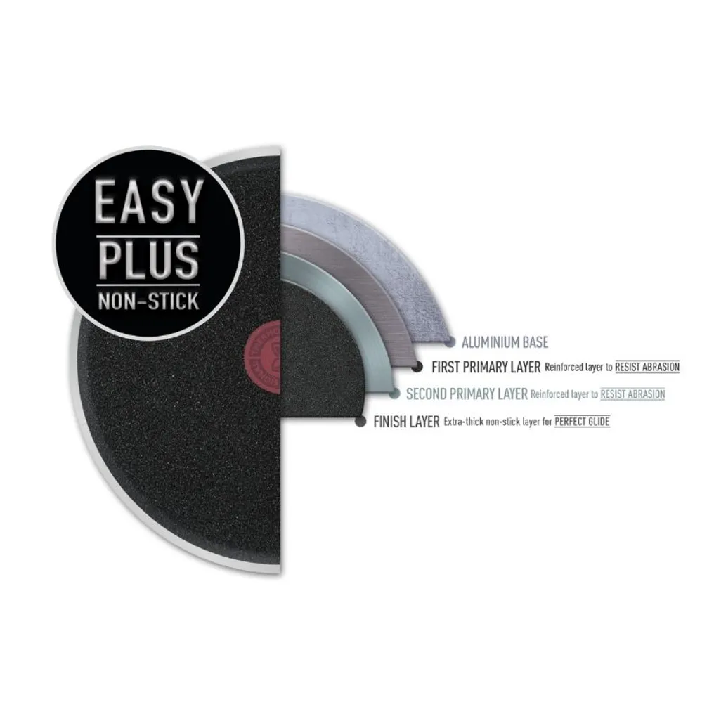The Tefal Simplicity Frying Pan has been designed with EasyPlus coating, therefore cleaning the pan is effortless. This frying pan has a 100% safe non-stick coating inside and outside.