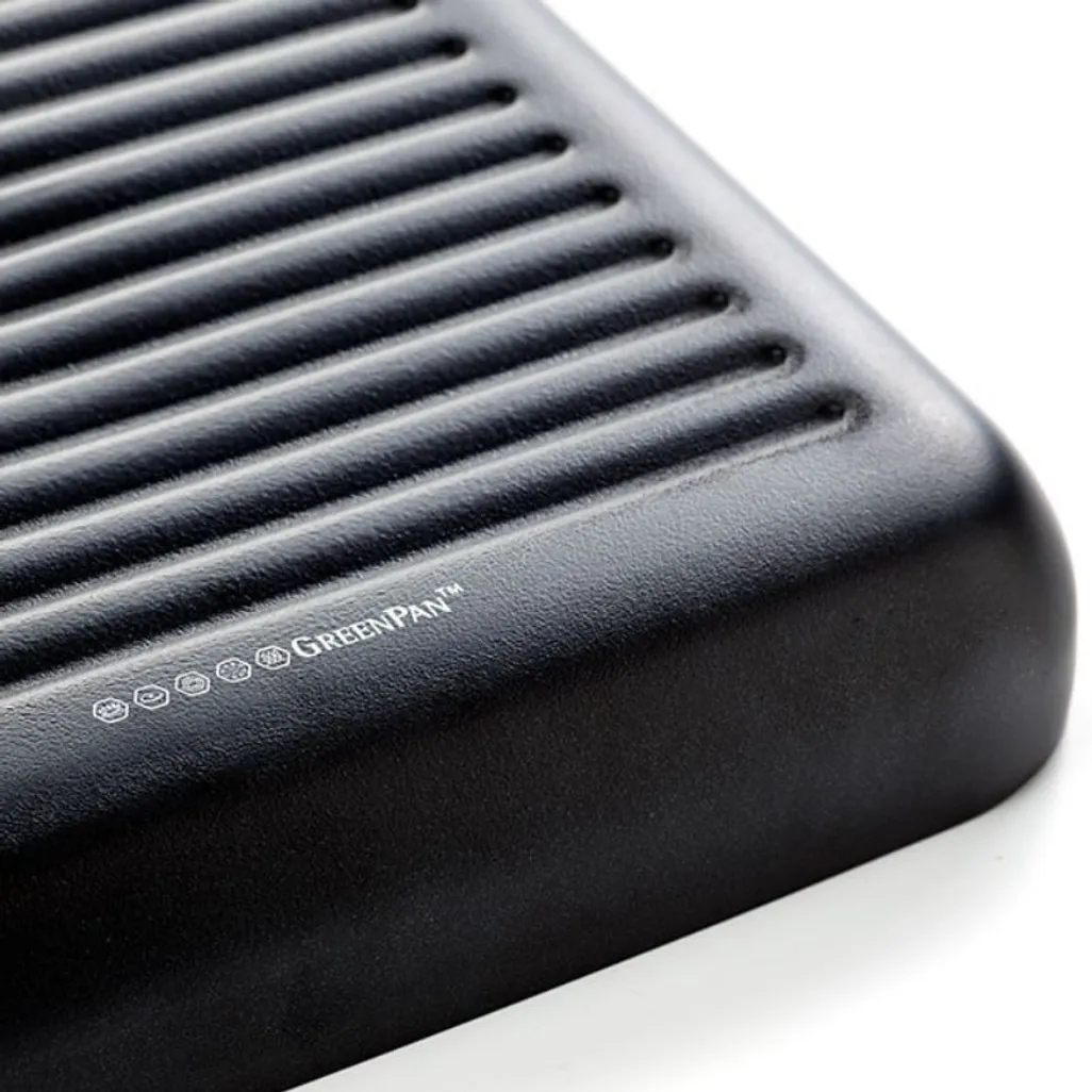 The Green Pan Cambridge 28cm Square Grill Pan has a Thermolon™ Infinity ceramic non-stick interior coating, which is enhanced with diamonds for extreme non-stick performance, quick heating and extra durability. Square pans have extended corners, meaning that they can fit in more food at one time, resulting in faster cooking. Stay-cool Bakelite handles will make it easy for you to transfer the 28cm pan from the hob to your dining area. You can prepare delicious meals any time of the day for your family in a few minutes.