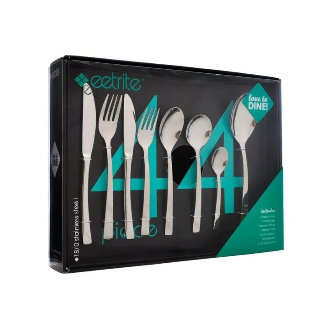 The Eetrite Newport 44 Piece Cutlery Set is made of 18/0 stainless steel and it is perfect for everyday use in the modern home. One of the benefits of the Eetrite Newport Set is that it is dishwasher safe, so once you are done using them, you can pop it in the dishwasher along with your other dishes.