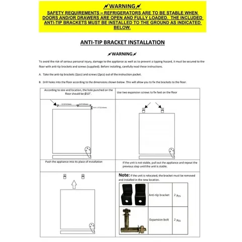 Please note : The unit has to be installed with the Anti-Tilt bracket (supplied with the user manual)