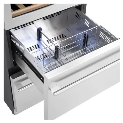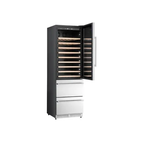 The SnoMaster 118 Bottle Upright Wine Cooler is the ultimate cooler that can store your wine collection as well as other essentials like snacks or non-alcoholic beverages like cans and water. With essentially 3 compartments - the top section with beechwood shelving and two drawer sections at the bottom, the SnoMaster 118 Bottle Upright Wine Cooler has an impressive 118-bottle capacity, dependent on bottle size (standard Bordeaux-sized bottles).