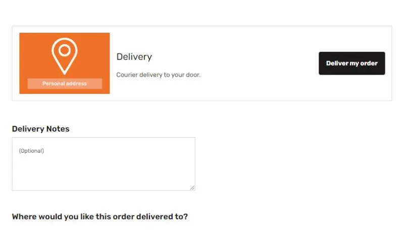 If you'd like your order to be delivered, then you can select the "deliver my order" icon. There is a section included, where you will be able to add delivery notes.