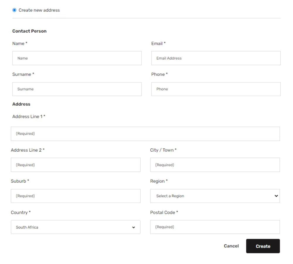 To create a new address, you will need to ensure that ALL of the fields are filled in, before you click on "create" button.