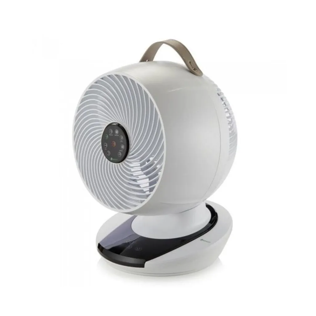 The Meaco 1056 Air Circulator Desk Fan has a fan head that moves elegantly up and down, left and right in order to move a huge amount of air around a room. With its multi-directional oscillation, it can move the air around the room bouncing the air off walls and ceilings keeping everyone in the room cool and not just the people who are in the direct flow of this fan’s air. This Meaco Fan has a faux leather handle, so you can easily pick up and move the fan.