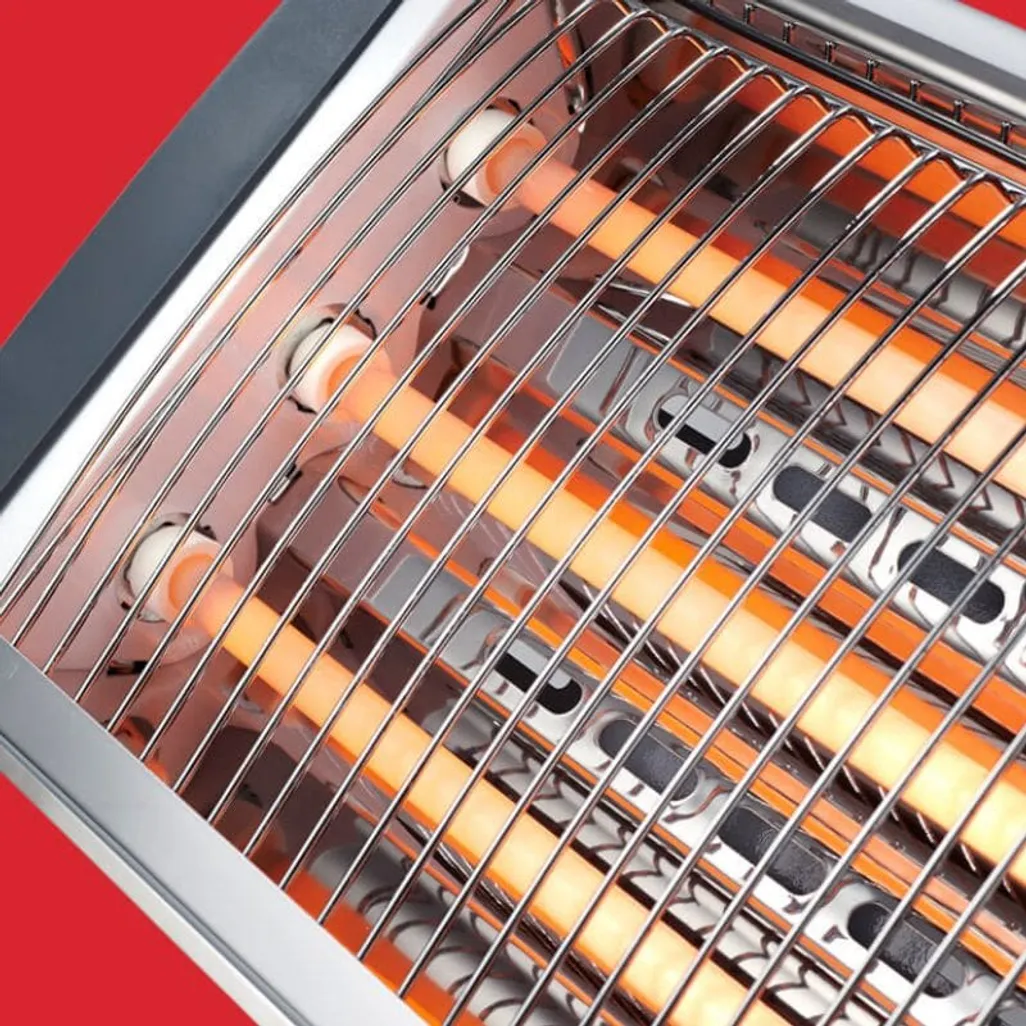 The Salton 3 Bar Heater consists of 3 silica heating elements, that will heat up a room quickly. There is a polished stainless steel reflector, to increase heat radiation, and there is built-in tip-over protection.
