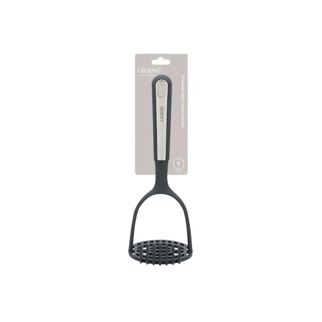 With the Legend Premium Nylon Potato Masher, you can mash your soft food, in order to make dishes such as mashed potatoes or apple sauce that you want to serve with a starter, main course or even a dessert. If you have any babies, you can puree ingredients in order to make baby food. The potato masher has a comfortable soft handle with stainless steel accent, durable nylon shaft and function end. Glass fibre additives provides extra strength. The premium design has side teeth for mashing and scraping in a pot.