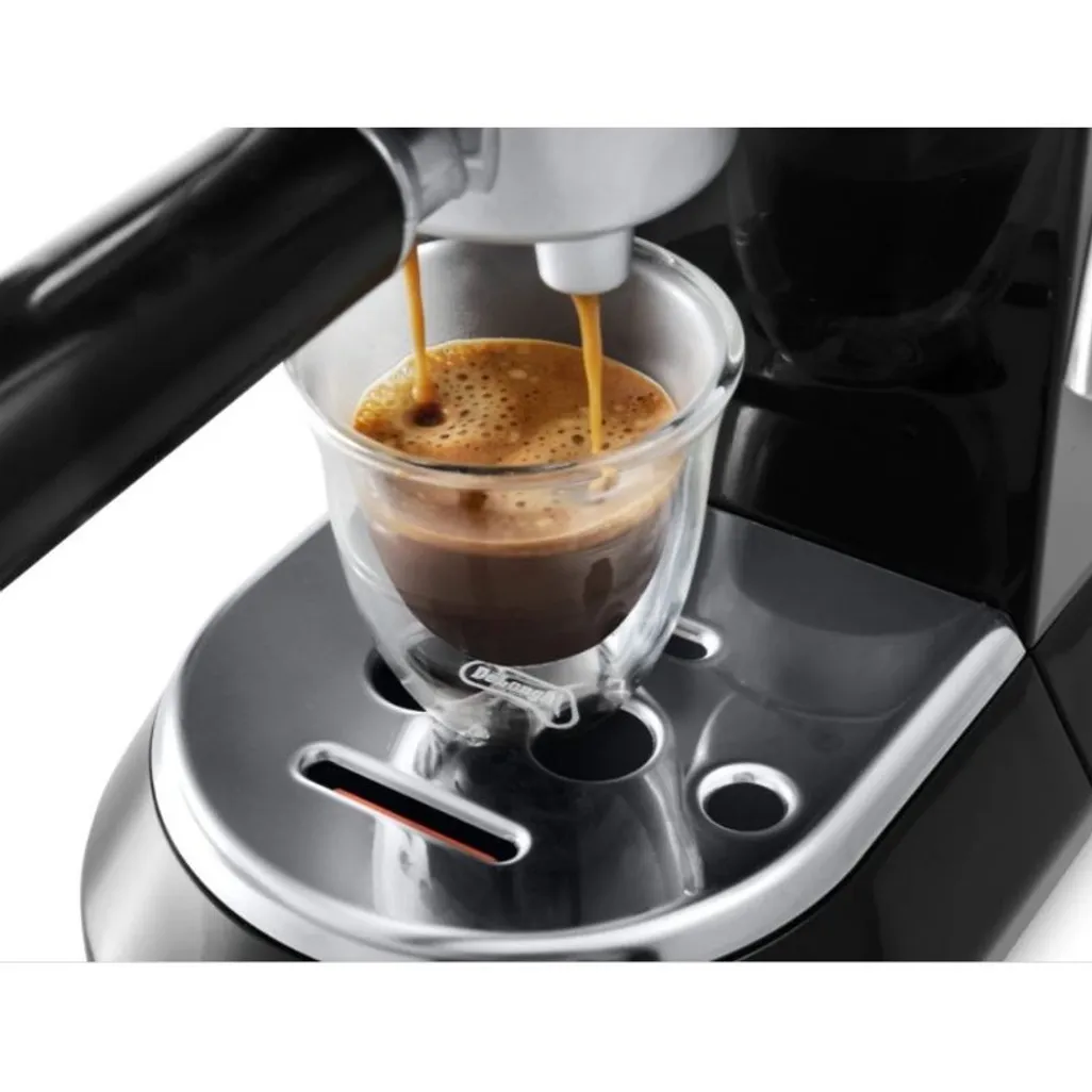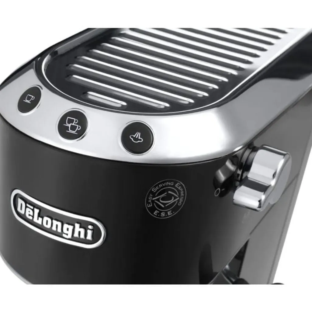 The Delonghi Dedica Style Pump Black Coffee Machine consists of the unique Thermoblock technology, which keeps the water at the exact temperature required to brew a perfect Espresso. With a 15 bar pressure , you can create an Espresso with a rich aroma and a nut coloured cream on top.