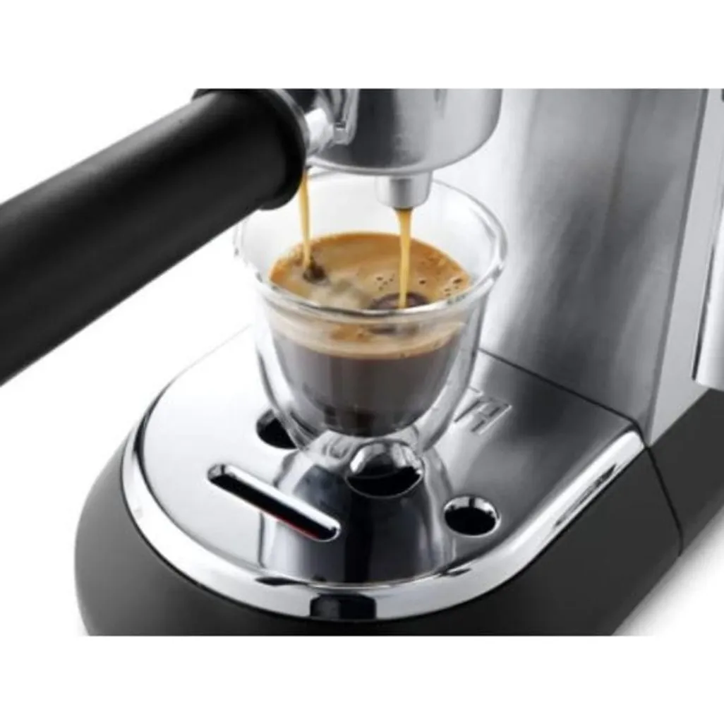 The Delonghi Dedica Style Pump Metallic Coffee Machine consists of the unique Thermoblock technology, which keeps the water at the exact temperature required to brew a perfect Espresso. With a 15 bar pressure , you can create an Espresso with a rich aroma and a nut coloured cream on top.